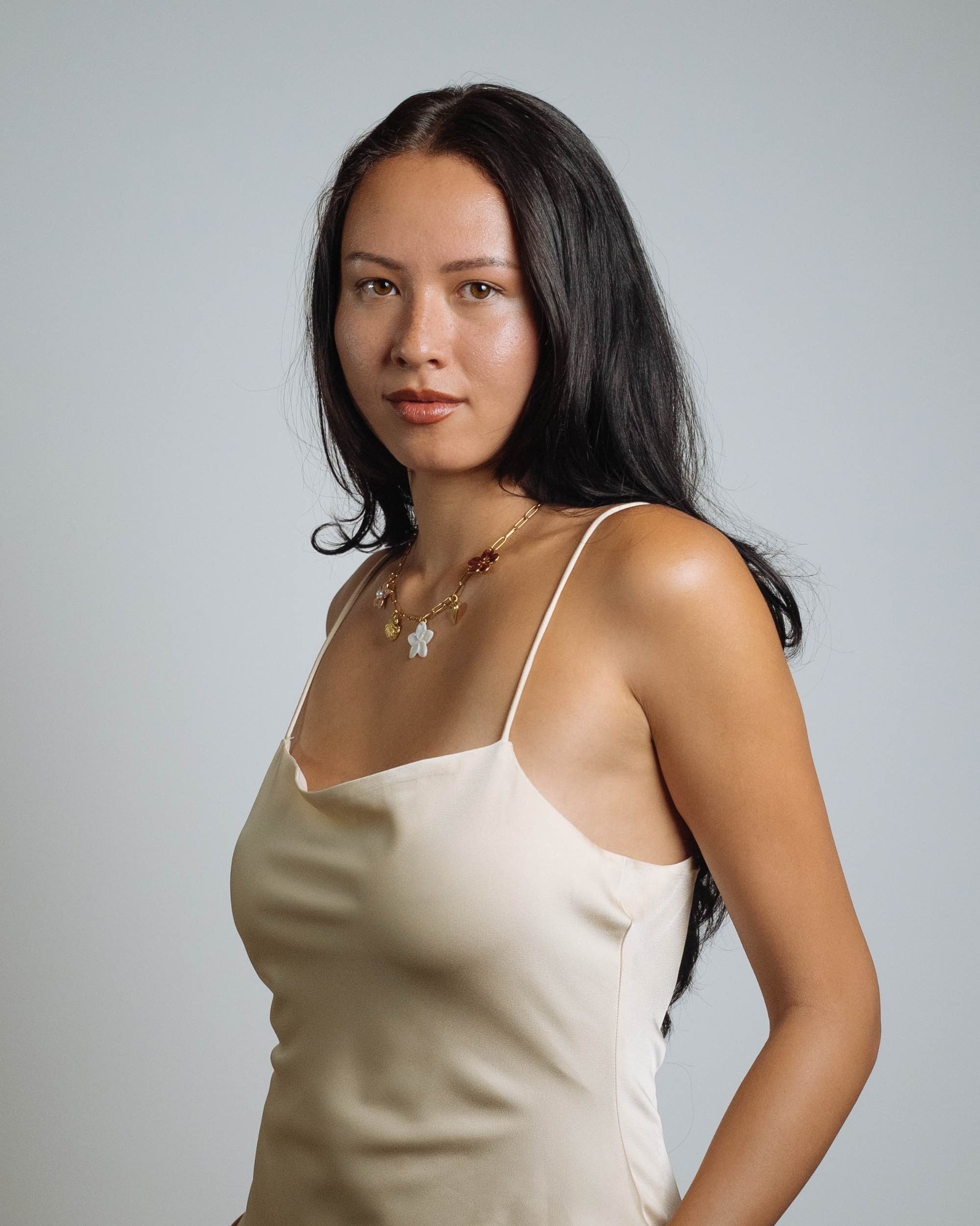 Charm necklace made of 18k gold-plated stainless steel with 5 high-quality pendants.